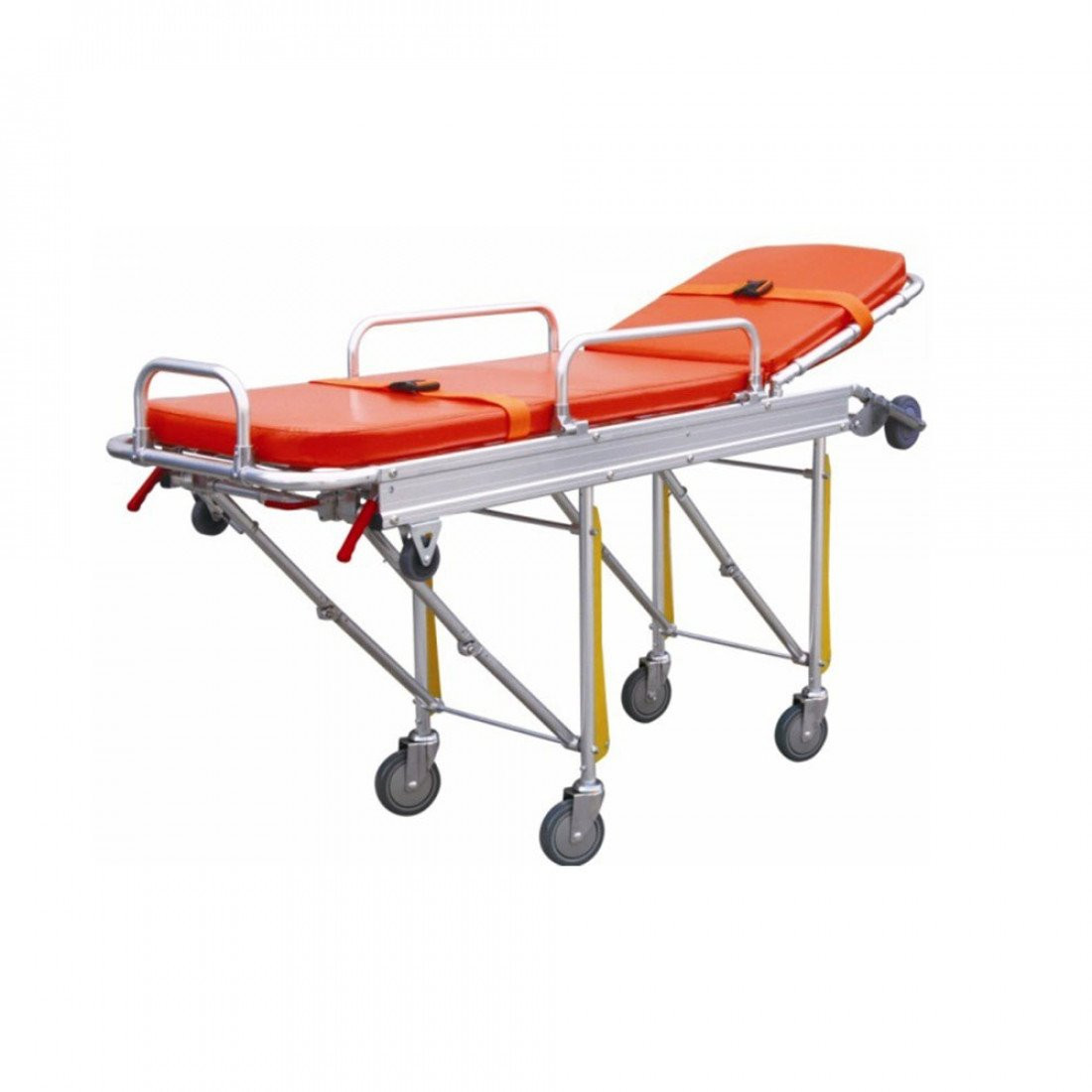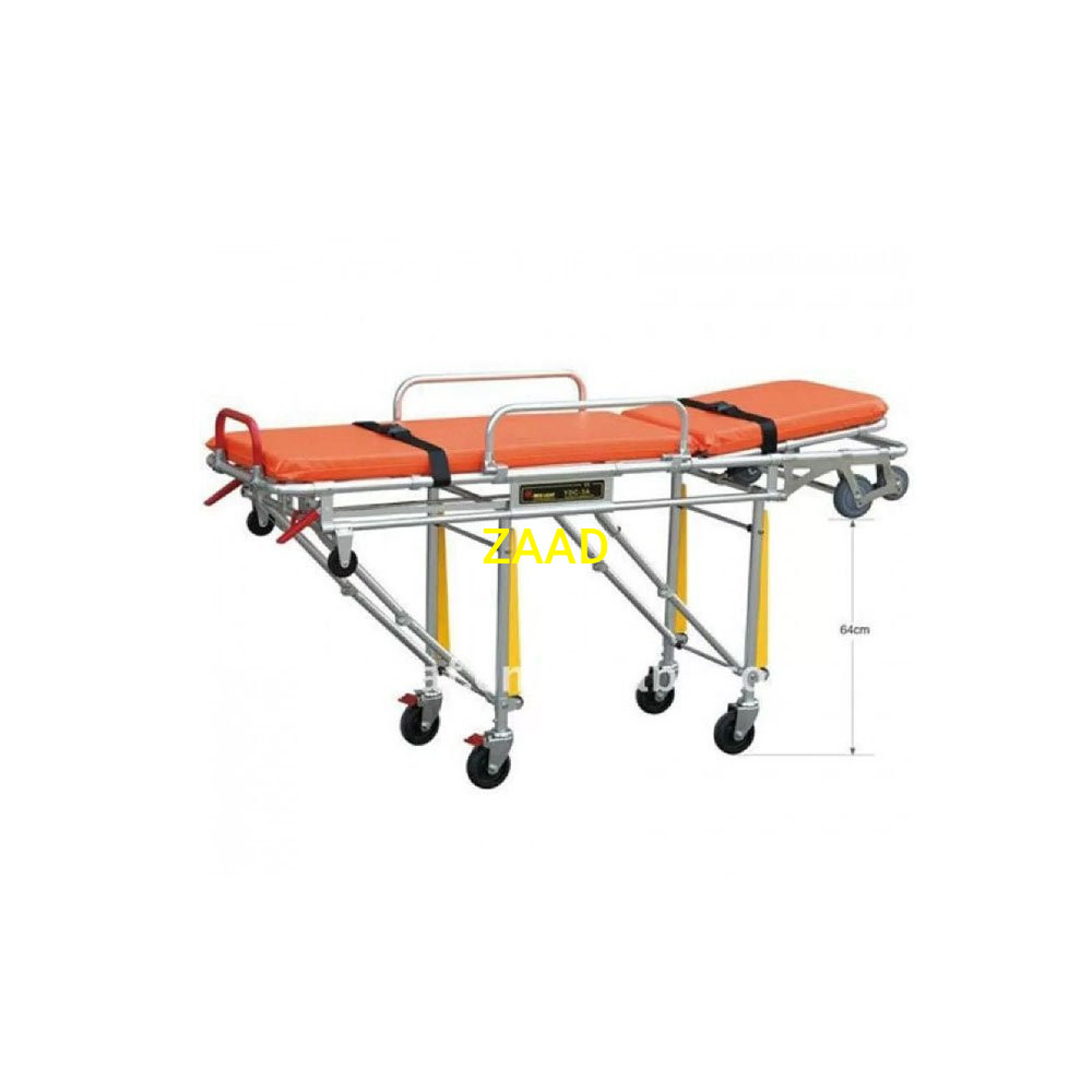 - التروللي قابل للطي عن استخدام مقبض الطي وذلك لسهولة دخولها لسيارة الاسعاف