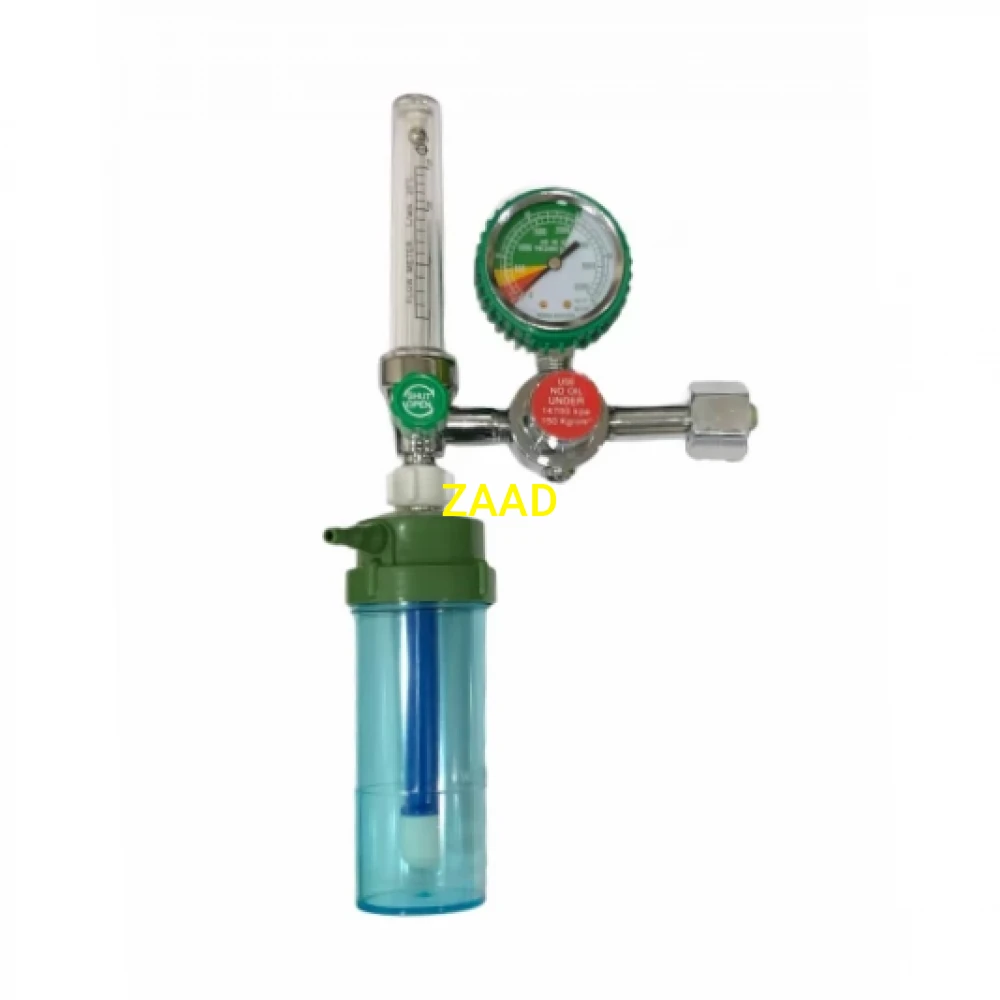 يتميز منظم الأكسجين بصمام التحكم في التدفق المدمج الذي يحافظ على ضغط 60 PSI ويوفر معدل تدفق متغير بين 0-25 لتر في الدقيقة (LPM) عند تزويده بأسطوانة أكسجين.